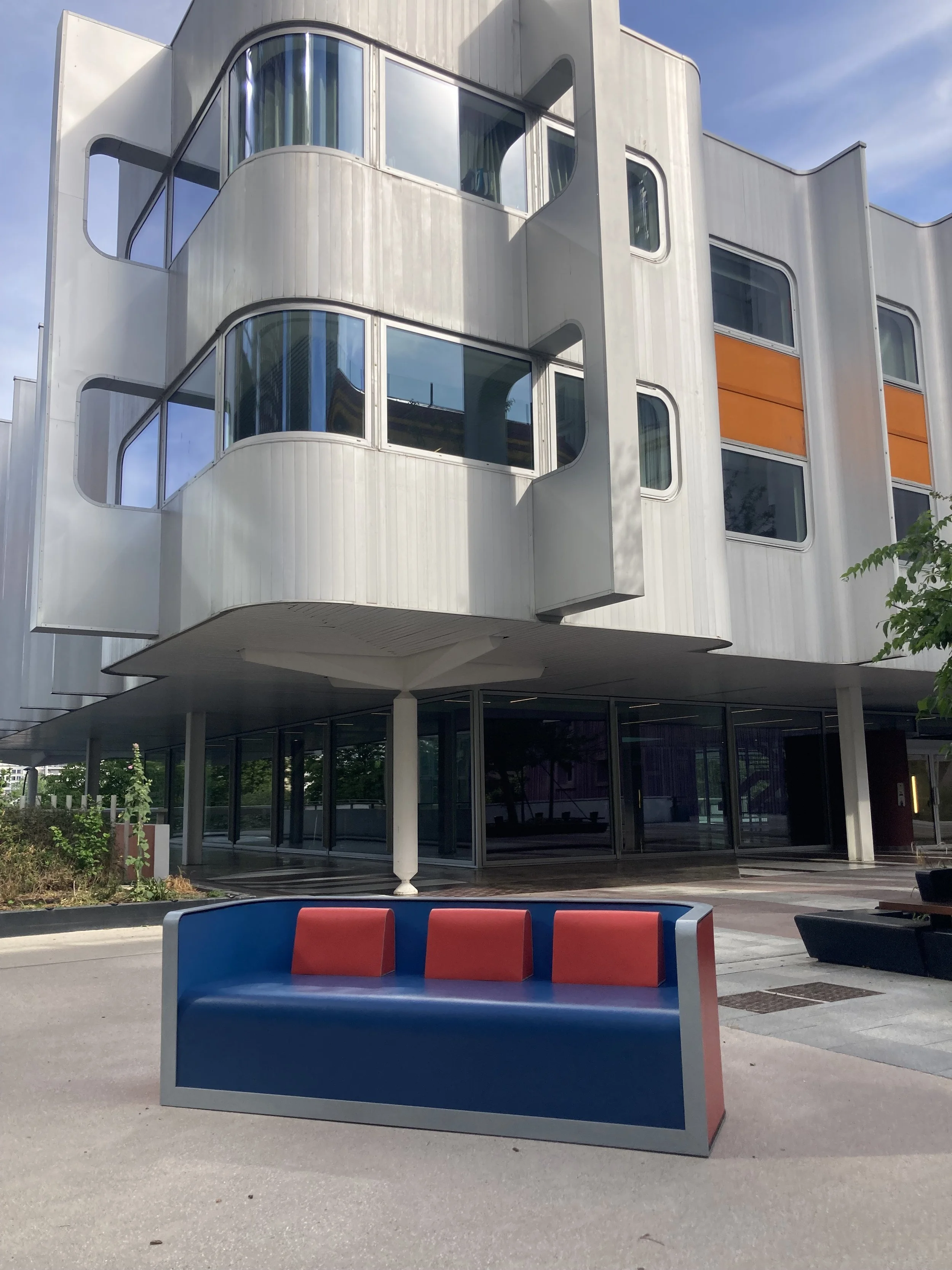 Batiment Orion : Emblématique de l’architecture moderniste des années 70 et cosigné par Jean Prouvé, le bâtiment Orion fait l’objet d’une réhabilitation bas carbone ambitieuse. Lors de sa transformation. Maximum par le biais de Mobius a pu récupérer les fenêtres aux bords arrondis composés de double vitrage et de châssis aluminium. Elles ont servis à la réalisation de 3 cabines insonorisées et 5 banquettes.